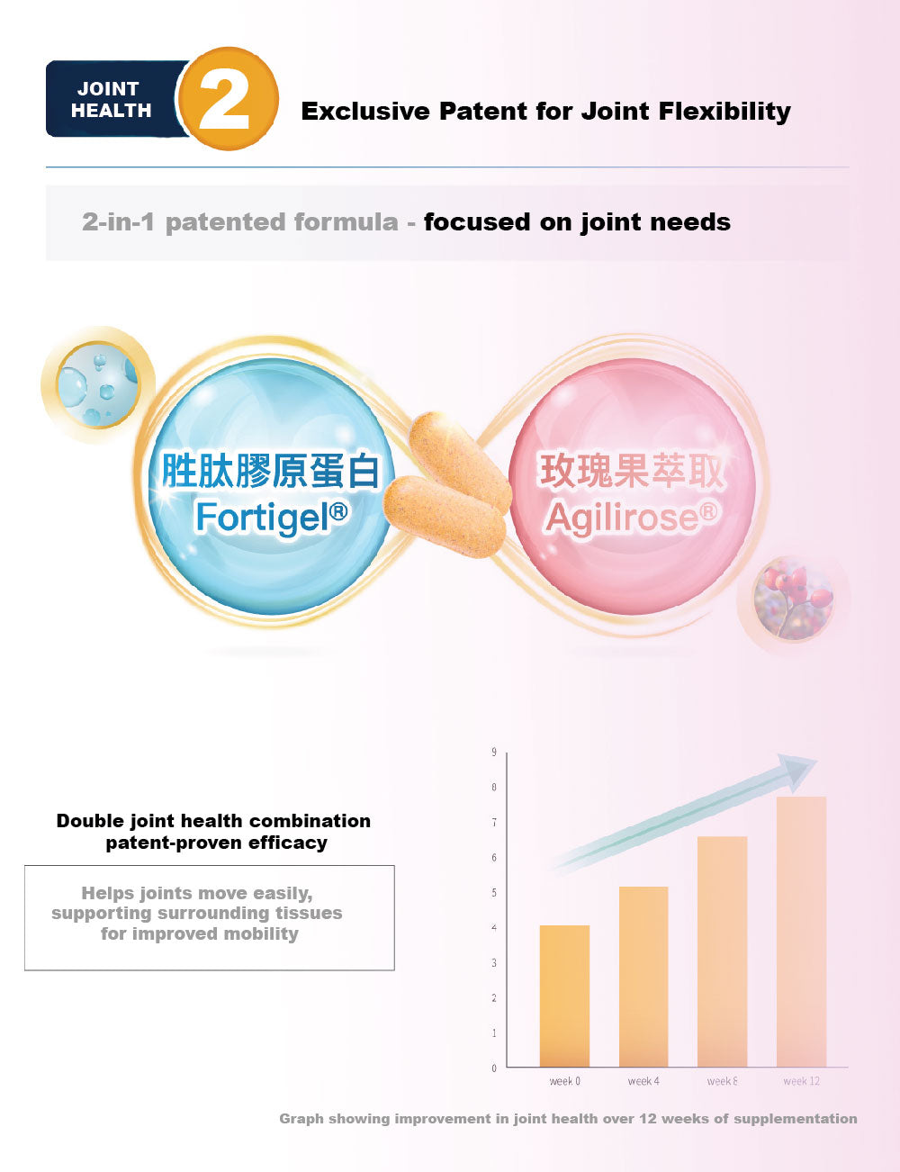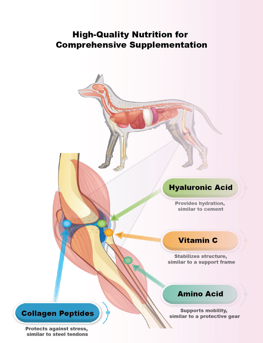 - Collagen Peptide Complex: Supports joint cartilage regeneration for improved mobility and comfort.